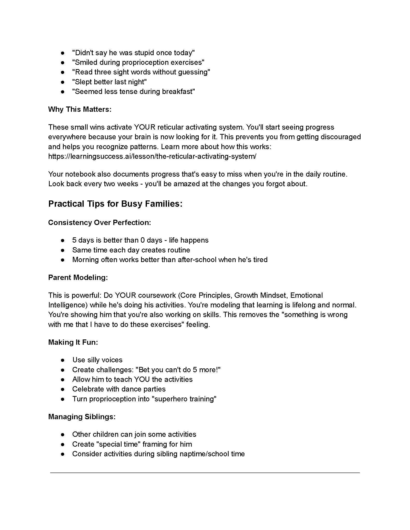 “My son did the VERY expensive Scientific Learning Brain Pro program. He HATED it. The only thing that kept him doing the exercises was that he was earning his new XBOX one. And even then he complained and tried to avoid it. I was constantly trying to avoid the power struggle. I have NONE of that with your program.”